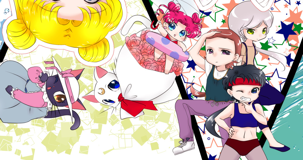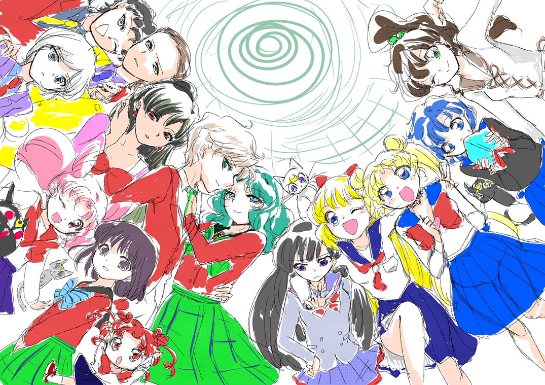 いいのでは 月華遊星4で出るらしい合同誌の裏表紙をアップしました。 あとサンプル↓ 6Pに全キャラ(ちびうさちゃんが出てません/まもちゃんが出ています)つめつめしたので文字は多いし細かいし各キャラ薄い感じですが。レイちゃんとはるかさんだけ若干多いかな。内部少ないかな。んな感じ。ギャグです。 しかし驚きの背景描いてない具合だ。いつもですが。 pixiv告知ぶんはこちら。 あとここに書いたか忘れたんですがイベントパンフレット(サークルカットとか書いてあって入場券にもなるあの本)のカバーが私の絵です。ハロウィン風で14人描きました。なんか引き伸ばし印刷でポスターにもなるらしくてドキドキしています。 拍手ありがとうございますーお返事続きに。 |