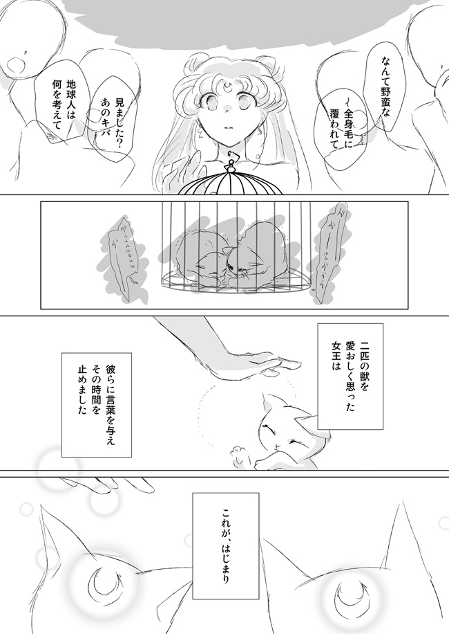 なんかこう 浮かんできました。 原作5部でルナアルはマウ星から来た宇宙人という設定になってますが、ただの猫だったらいいな、という妄想です。 1 2 追記:誤字をこっそり治しました。 この後はクイーンセレニティによる育猫日記に突入しますのでそこは脳内補間で。 --- ところで話題になってますね S..H.Figuarts・chibi-arts 美少女戦士セーラームーン(電撃ホビーウェブ)! ………新アニメはキャラデザあのままで行くの?(真顔 ちっちゃいのかわいいなー。というか何気にルナがいいルナが。どっちもかわいい。 拍手ありがとうございます! |