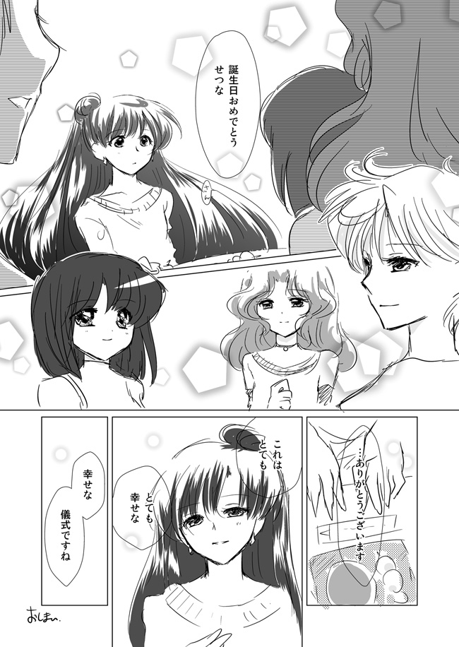 ぜひ「はるかさん」「みちるさん」も言って欲しかった。その、元はあんなカンケイで、そこからパパママを経て、うさぎちゃんたちと同じ呼び方をするところに辿りつきましたっていうのがいいの。いいの。