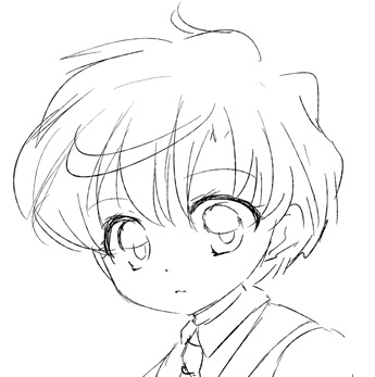 ちょっと頭身落としてみよう、と思ったらさくっと描けて泣いてるところです。