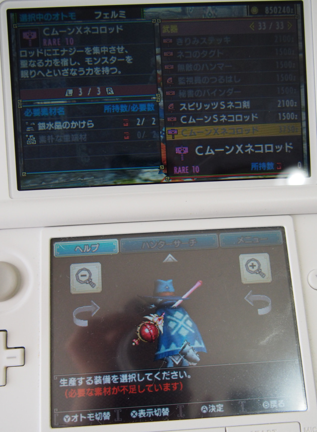 ルナ衣装はさておいて鈍器だけつくりました。けっこうモンスターが寝ます。いやいや。