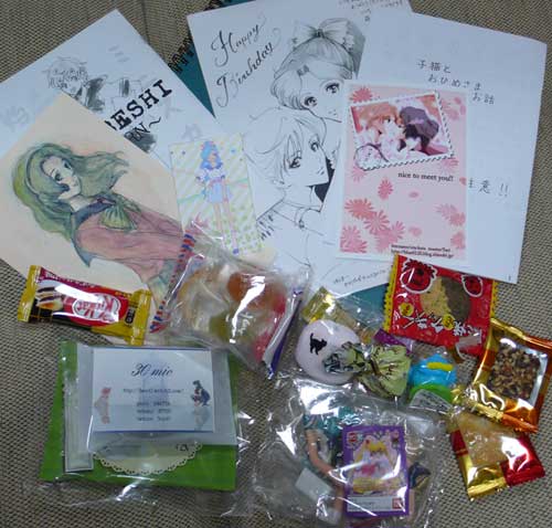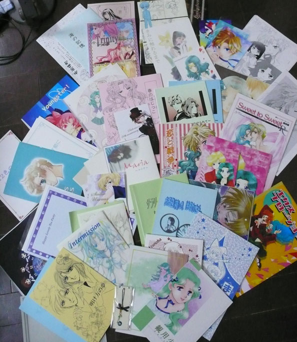 いわゆる戦利品。 と いただきもの。 ありがとうございます! 個人宛メッセージやイラストや、新刊頂いてしまったり、痺れました… 個々へのメッセージはちょこちょこ送ってゆきますーお待ちくださいー 参加された皆さん運営さんお疲れ様でした! なんかすごい疲れました。私が。一夜明けてもすごい倦怠感の中にいる。頂いたお菓子で体力回復をはかるー。 もし、もしペーパー見てサイト見に来てくださったかたいらしたら、初めまして! よかったら漫画読んでいってください…本当にクオリティばらばらですけども…! 持っていったペーパーなんですが、1サークルさんに二人いらしたり、ブログ見てるサイトさんだとウラネプ関係なくても押し付けたり、で、なんだかんだと結局数が足りなくなりまして(無計画)、途中で既に配ったものを一枚借りてコンビニコピーしてそれでも足りないという、具体的にはせれさんごめんなさいでした…。あとしゅてるんさんに渡せてないきがする…。 詳細なレポートを後日アップする気力があるかどうかちょっとわからないのでそこらへんざっと。 ・結局身内のほかにペパは30部くらい刷る。たりるたりる。 ・去年と同じく8時45分くらいに東京着。人生初の新幹線グリーン車!だったんですがめっちゃ酔った…うええ。時間潰せそうなお店を探して駅構内をウロウロしていたらなこさんから、ひどーず(サークル名)が秋葉駅前にいるので来ませんかーとメールがあったので合流 ・サークルチケットが二枚だけとのことで入れないとこよさんとマックで時間を潰す ・移動、19番目(正確には整理券にちょっと問題があったので私から一番分繰り上がるんです)に整理券とサークルパンフレットゲット。しかし並べないらしいのでまた近くのコーヒー屋で甘味などを摂るおいしくない。 ・なんか百人は余裕でいる気がする列に並ばされて入場。番号が早かったので一番最初の組で入れたんですがそんないきなり入ってもどうしたらいいかわからない。とりあえず色んなサークルさんの空きを見計らって新刊購入&ペーパー渡し。はずかしい。 ・主運営のるーくさんにペーパー渡そうと声をかけた人がVOIDさんだった。お二方とも旧知の方だったことが判明びっくりした。るーくさんによるセラミュ布教活動被害者の会が、私とVOIDさんの間に発足。 ・30さんにウラネプのガチャガチャフィギュアを頂くううううううきたあああ!umiさんも名詞とお菓子ありがとうございます! ・麻里央さんに新刊を頂いてしまう。パニック起こして顔が真っ赤に。え、ていうかなにこのいいひと ・倉崎さんにみちるさんの水彩画を頂いてしまうえええええええわああああ ・ひどーず-1は列になっていて近づけない ・依々さんにご挨拶。お久しぶりですーと言った後で気付いたんですが昔何度かお買い物に行っていたので私側が一方的に知ってたんですね…oh... ・持っていったペーパーを配り切ってしまったもののそういえば小春さん来るんじゃんいやいやと気付き、巫笛さんから一枚回収して外のコンビニでコピーして三部増やす ・戻ってきて巫笛さんに返したところで小春さん・こうのさんペアに見つかる。上着を前側で持ってらしたのでおなかおおきいの気付かなかった!ていうかなにこのフェミニンなお姉さまがた! 話の流れで巫笛さんに髪の毛を編みこまれている真っ最中にsariさんがお子さん連れで登場。そういえばsariさんにも渡してなかったよ!おこたますげえかわいいな食えたけのこの里! ・今回は座るところがないということで三人でお昼を食べに近くのカフェへ。なかなかおいしかったですスコーンが。そこで人狼の話とかFFの話とかペルソナトークとか年代トークとかしてました。他ジャンルが入ると盛り上がるの法則またたび。あとうちの猫ちょうかわいいんですよ!!ほんとに!!そしてそのごはんごちそうさまでしたぺこぺこ。ヘリオトロープのさゆめさんのネプコスがやばいかわいいとか盛り上がったりもした。 ・ビンゴ大会は参加しそびれました。帰ってきたらじゃんけん大会やってたので参加。私は二回戦までに全負け。お二人はなんか貰ってた。くー。途中で麻里央さんが小春さんに椅子を持ってくる。そしてお二人が先に帰ってしまったのでもしや先ほどの椅子は麻里央さんのサークルスペース内の椅子ではないのかと聞きに行ってそのままちょっとおさべり。と、75さんを紹介。そのまま流れで両名に来年はサークル参加で!と言われ毎年だんだん追い詰められている気がするじりじり。 ・ところで会場が熱気でくそあついです。あせだく。化粧崩れまくり。他の人も崩れてるからいいのよ(居直った ・巫笛さんにやたらといじられる。 ・もやし矢部は相変わらずだった。もやべ誌2あざーす! ・帰り際にるーくさんに挨拶して去る。 ・イベントアフターはねここさん・とこよさん・75さん・もやしさん・矢部さんとカラオケへ。後ろ+私の四名はモンハン。体力のある75さんが今回ちょっとつらそうだ